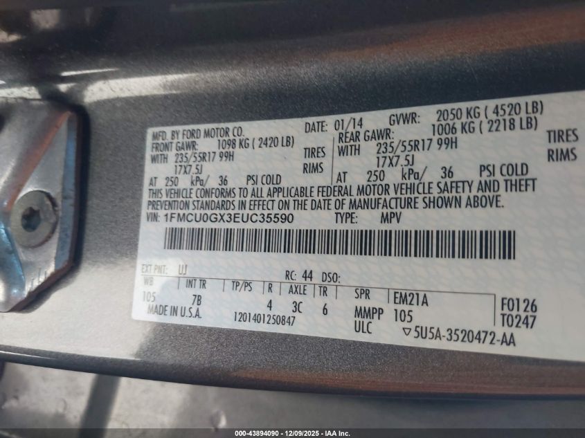 2014 FORD ESCAPE 2014 року Бензин, 1.6, Передний привод, vin - 1FMCU0GX3EUC35590 из США