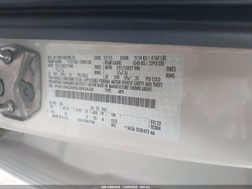2016 FORD ESCAPE 2016 року Бензин, 1.6, Полный привод, vin - 1FMCU9GX9GUB82630 из США