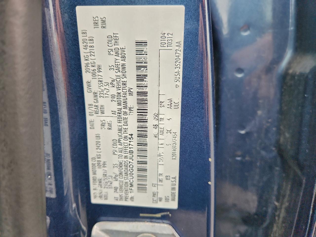 Цвет СинийЦилиндры 4VIN 1FMCU0GD7JUB17154Состояние НеизвестноПовреждения ЗадняяДата аукциона 2025-12-12 AutoRIA
