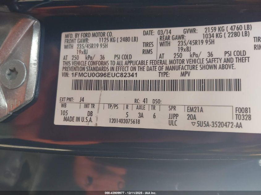 2014 FORD ESCAPE 2014 року Бензин, 2.0, Передний привод, vin - 1FMCU0G96EUC82341 из США