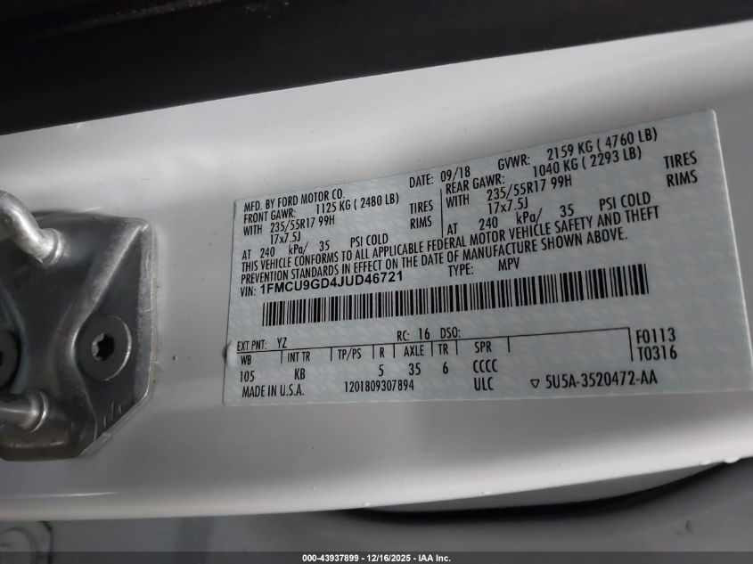 2018 FORD ESCAPE S
