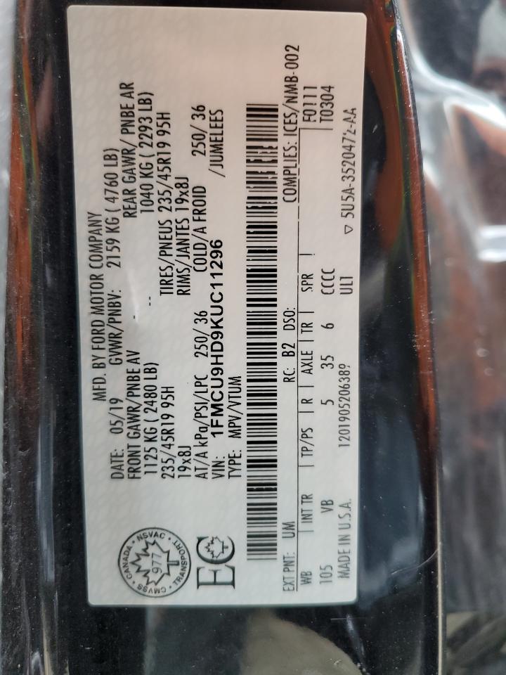 2019 FORD ESCAPE 2019 року Бензин, 1.5, 4x4 с передним приводом, vin - 1FMCU9HD9KUC11296 из США