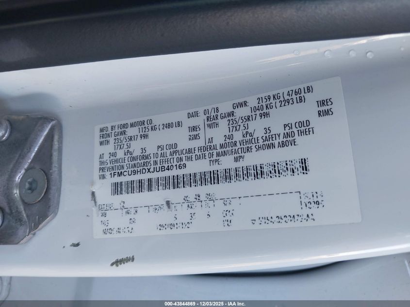 2018 FORD ESCAPE 2018 року Бензин, 1.5, Полный привод, vin - 1FMCU9HDXJUB40169 из США