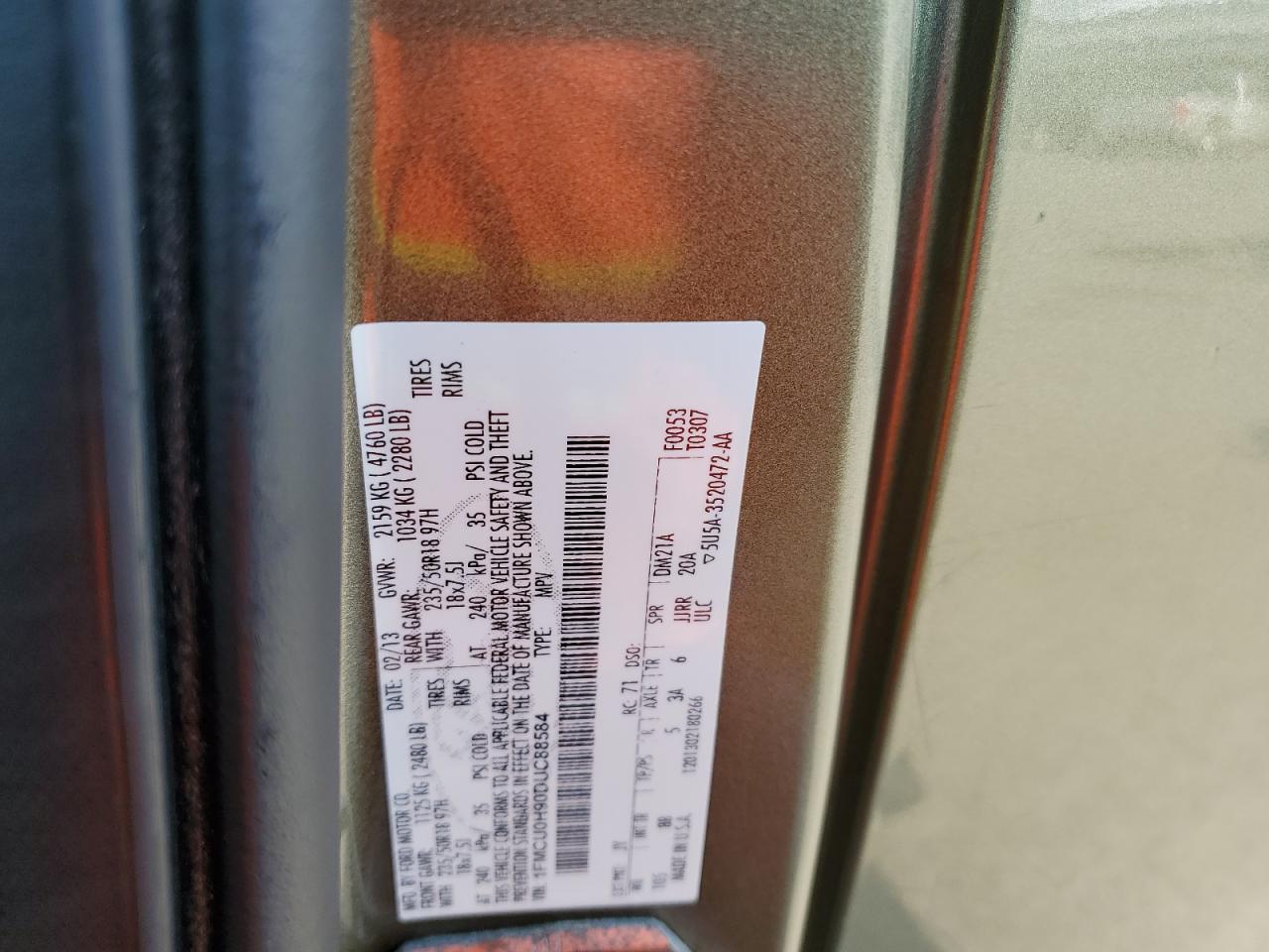 2013 FORD ESCAPE 2013 року Бензин, 2.0, , vin - 1FMCU0H90DUC88584 из США