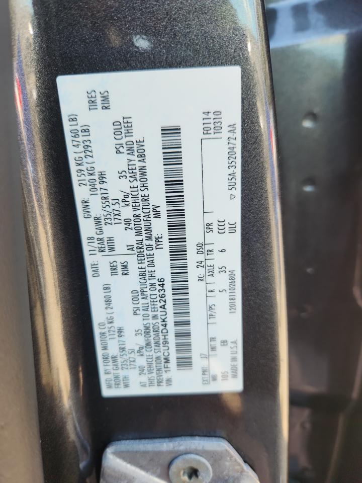 2019 FORD ESCAPE 2019 року Бензин, 1.5, 4x4 с передним приводом, vin - 1FMCU9HD4KUA26346 из США