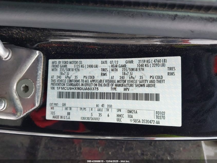 Цвет ЧерныйЦилиндры 4Привод Полный приводVIN 1FMCU9HX9DUA60375Состояние Заводится и едет (проверено)Повреждения Передняя или задняя AutoRIA