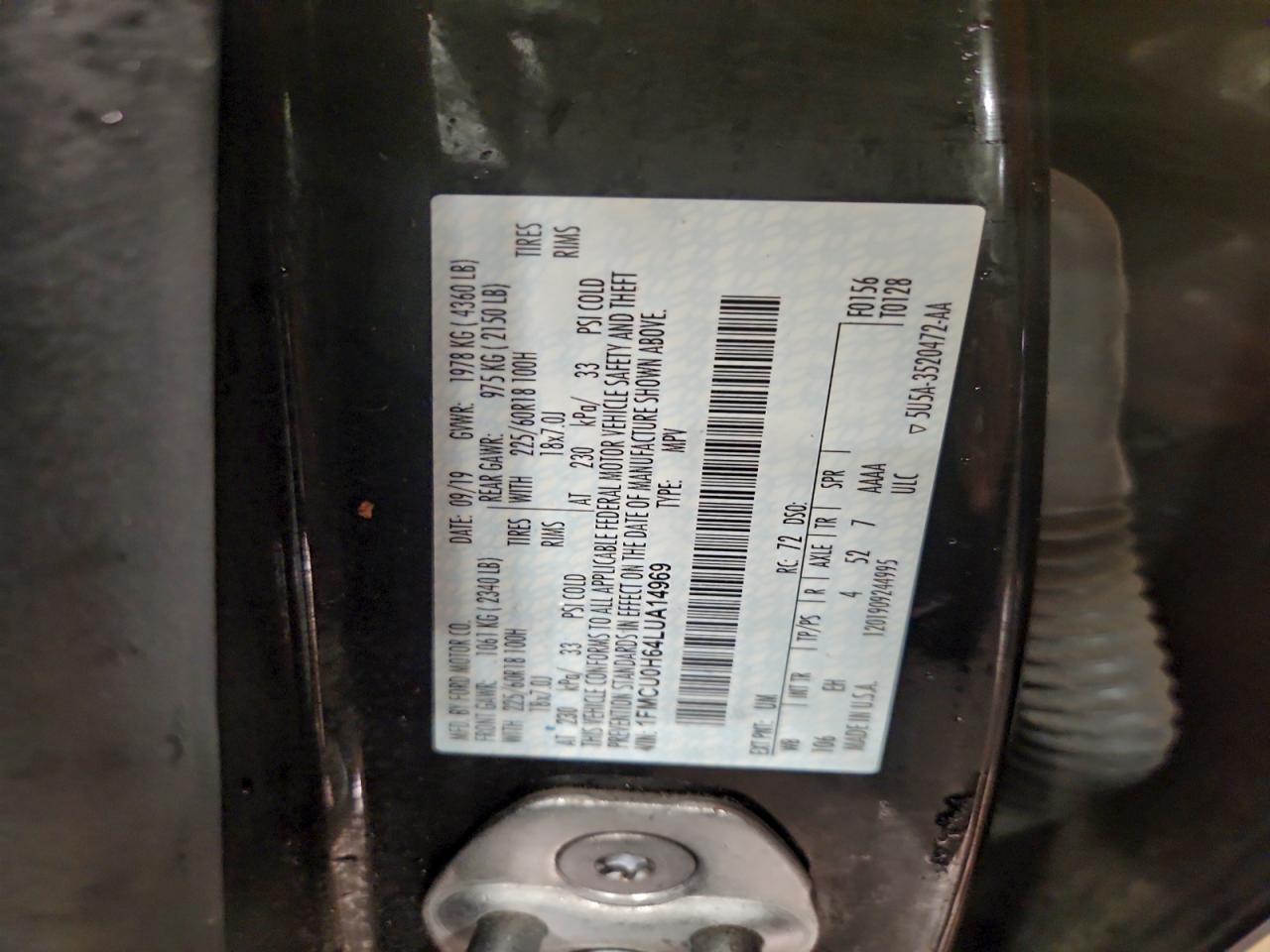 2020 FORD ESCAPE 2020 року Бензин, 1.5, , vin - 1FMCU0H64LUA14969 из США