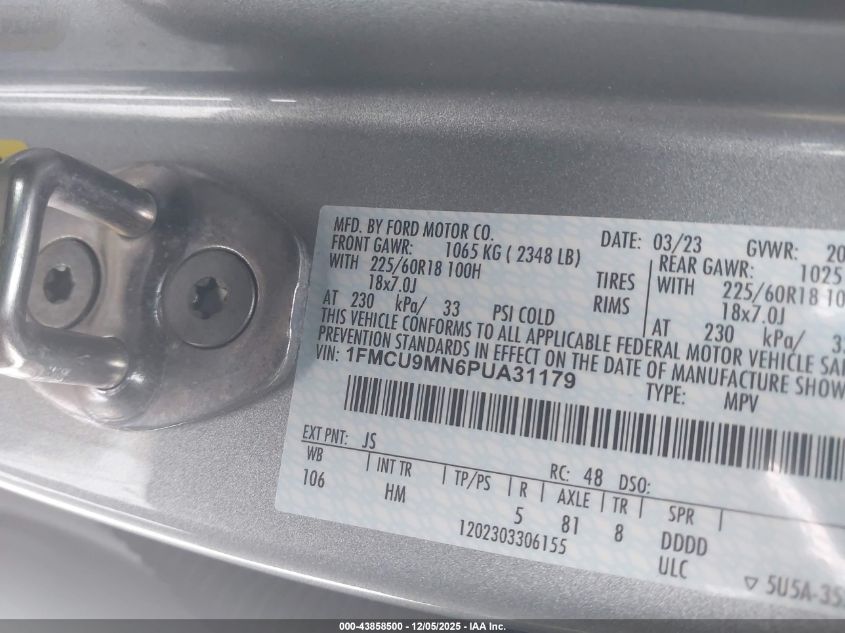2023 FORD ESCAPE 2023 року Бензин, 1.5, Полный привод, vin - 1FMCU9MN6PUA31179 из США