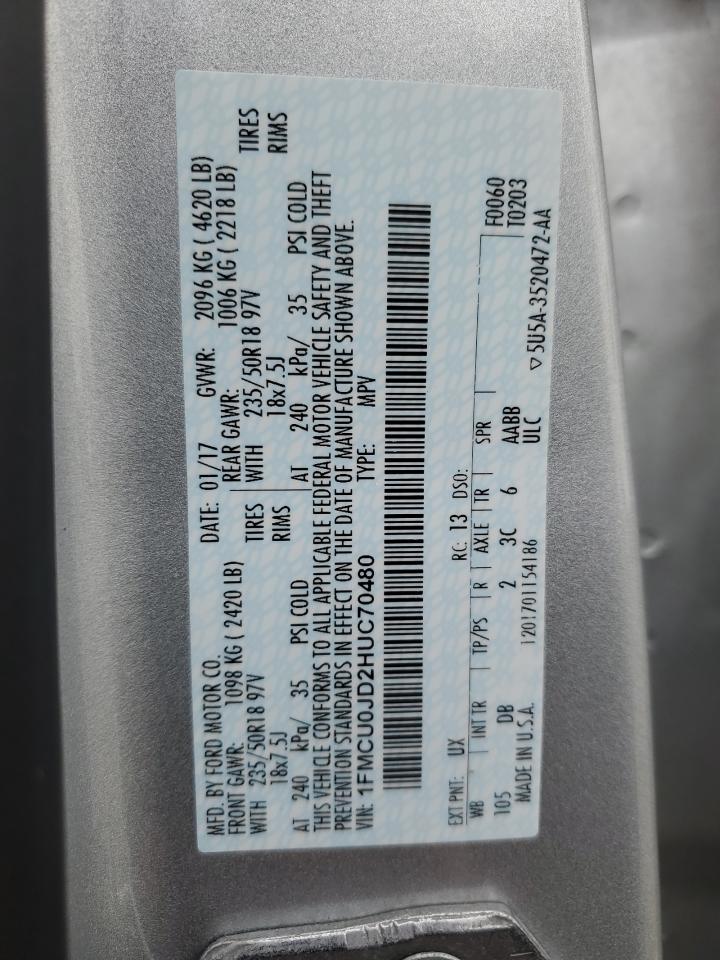 2017 FORD ESCAPE 2017 року Бензин, 1.5, , vin - 1FMCU0JD2HUC70480 из США