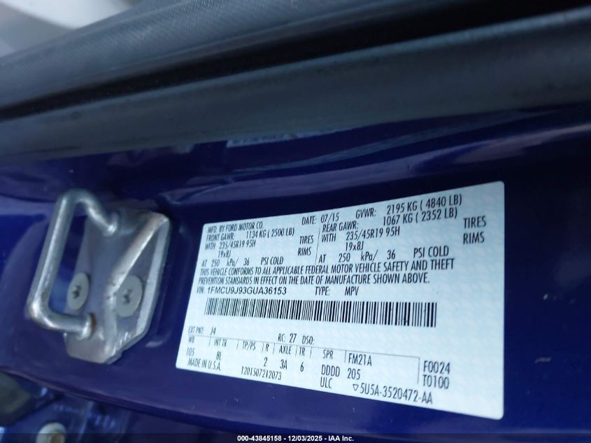 2016 FORD ESCAPE 2016 року Бензин, 2.0, Полный привод, vin - 1FMCU9J93GUA36153 из США