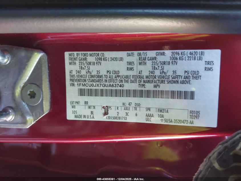 2016 FORD ESCAPE 2016 року Бензин, 1.6, Передний привод, vin - 1FMCU0JX7GUA63740 из США