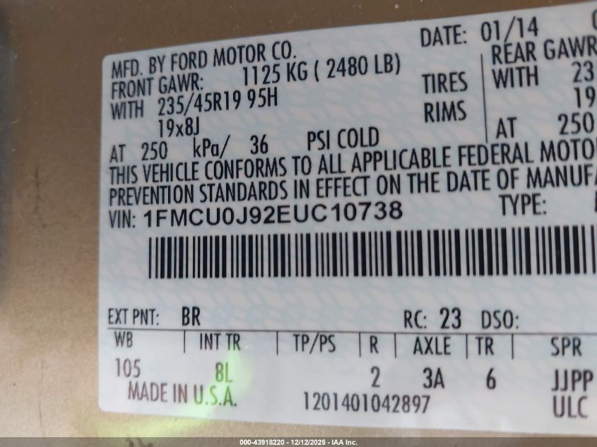 2014 FORD ESCAPE 2014 року Бензин, 2.0, Передний привод, vin - 1FMCU0J92EUC10738 из США