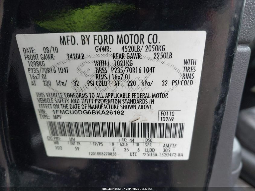 2011 FORD ESCAPE 2011 року Бензин, 3.0, Передний привод, vin - 1FMCU0DG6BKA26162 из США