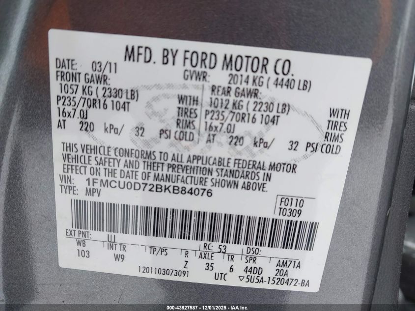 Цвет СерыйЦилиндры 4Привод Передний приводVIN 1FMCU0D72BKB84076Состояние Заводится и едет (проверено)Повреждения Передняя левая AutoRIA