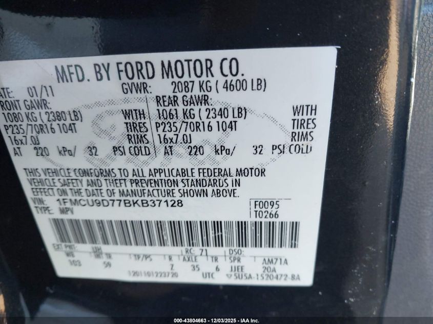Цвет ЧерныйЦилиндры 4Привод Полный приводVIN 1FMCU9D77BKB37128Состояние СтационарноПовреждения Правая сторона AutoRIA