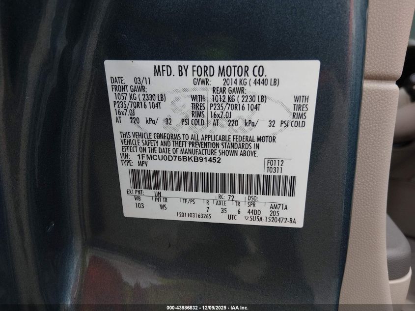 Цвет СинийЦилиндры 4Привод Передний приводVIN 1FMCU0D76BKB91452Состояние СтационарноПовреждения Передняя или задняя AutoRIA