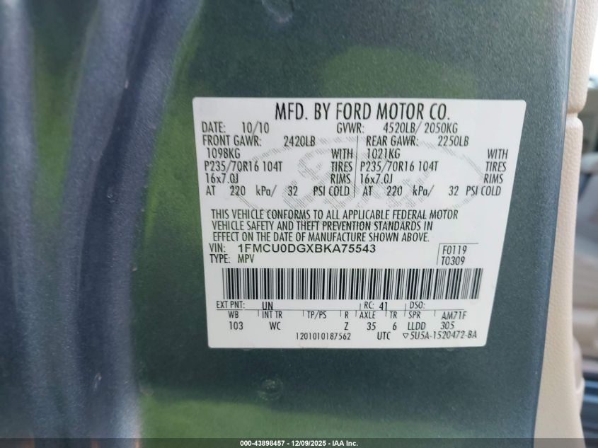 2011 FORD ESCAPE 2011 року Бензин, 3.0, Передний привод, vin - 1FMCU0DGXBKA75543 из США