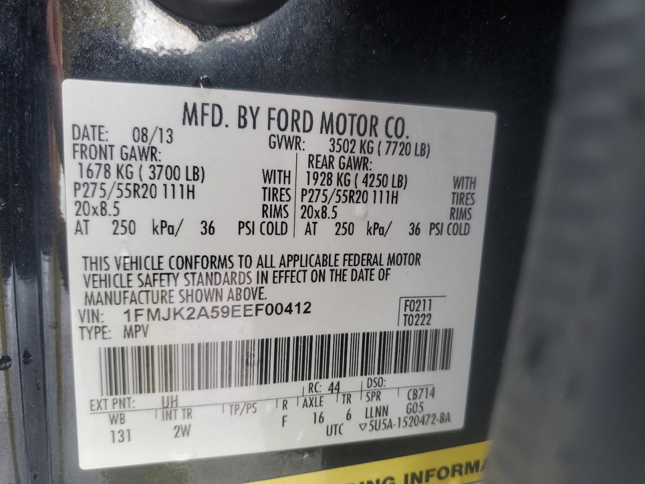 Цвет ЧерныйЦилиндры 8Привод 4x4 с задним приводомVIN 1FMJK2A59EEF00412Состояние НеизвестноПовреждения Задняя AutoRIA