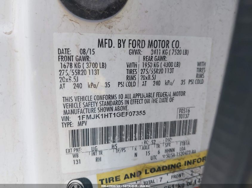 2016 FORD EXPEDITION 2016 року Бензин, 3.5, , vin - 1FMJK1HT1GEF07355 из США