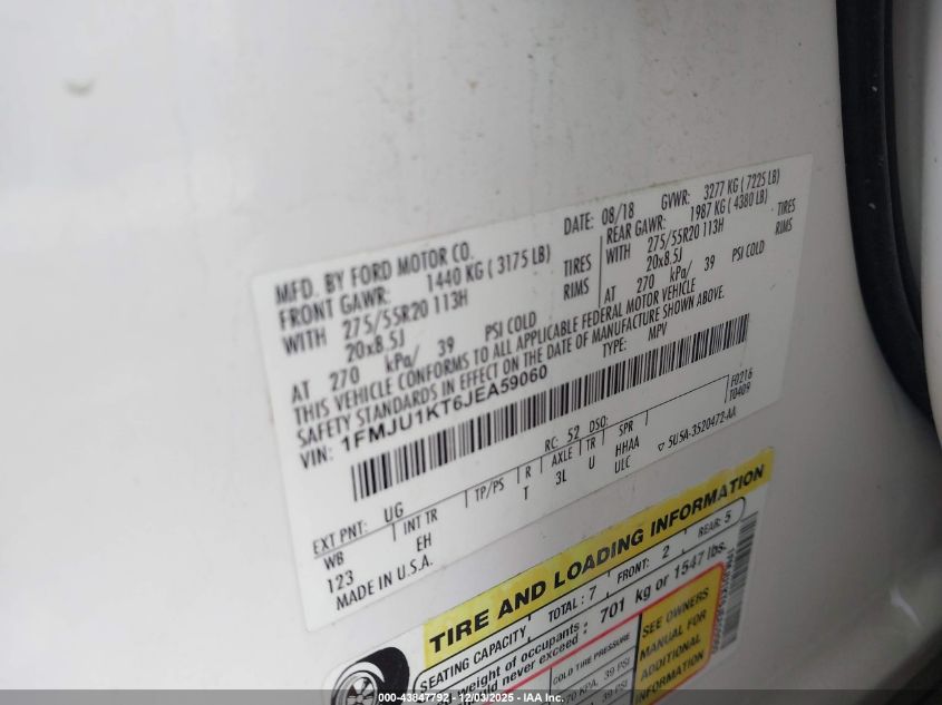 Цвет БелыйЦилиндры 6VIN 1FMJU1KT6JEA59060Состояние Заводится и едет (проверено)Повреждения Передняя или задняя AutoRIA