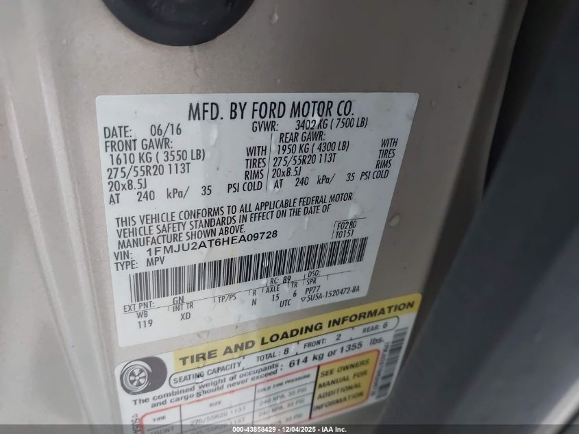 2017 FORD EXPEDITION 2017 року Бензин, 3.5, Полный привод, vin - 1FMJU2AT6HEA09728 из США
