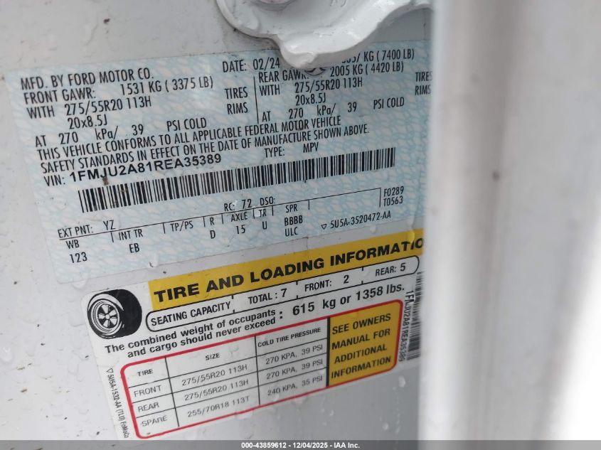 2024 FORD EXPEDITION 2024 року Бензин, 3.5, Полный привод, vin - 1FMJU2A81REA35389 из США