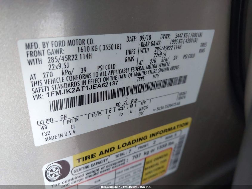 2018 FORD EXPEDITION 2018 року Бензин, 3.5, Полный привод, vin - 1FMJK2AT1JEA62137 из США