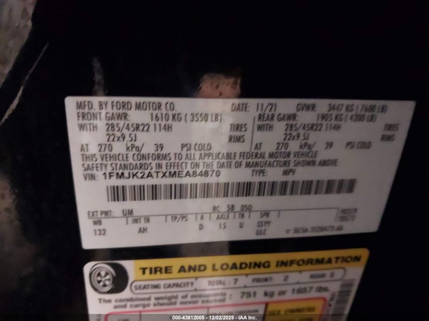 2021 FORD EXPEDITION 2021 року Бензин, 3.5, Полный привод, vin - 1FMJK2ATXMEA84870 из США