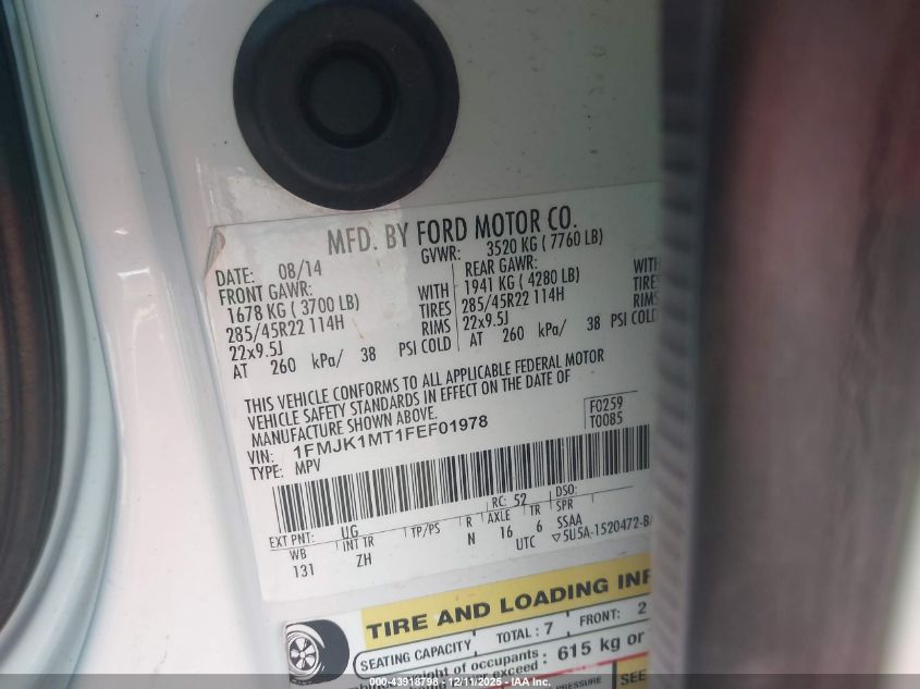 2015 FORD EXPEDITION 2015 року Бензин, 3.5, Полный привод, vin - 1FMJK1MT1FEF01978 из США
