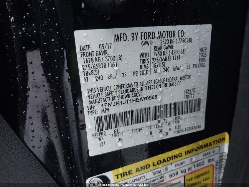 Цвет ЧерныйЦилиндры 6Привод Полный приводVIN 1FMJK1JT1HEA70968Состояние СтационарноПовреждения Передняя или задняя AutoRIA