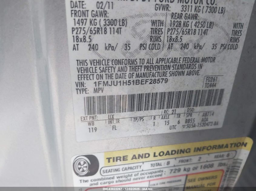 2011 FORD EXPEDITION 2011 року Бензин, 5.4, , vin - 1FMJU1H51BEF28579 из США
