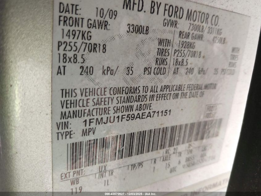 Цвет СеребряныйЦилиндры 8VIN 1FMJU1F59AEA71151Состояние СтационарноПовреждения Задняя