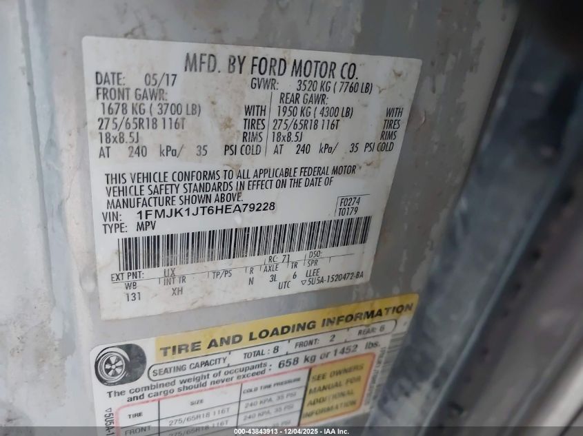 2017 FORD EXPEDITION 2017 року Бензин, 3.5, Полный привод, vin - 1FMJK1JT6HEA79228 из США