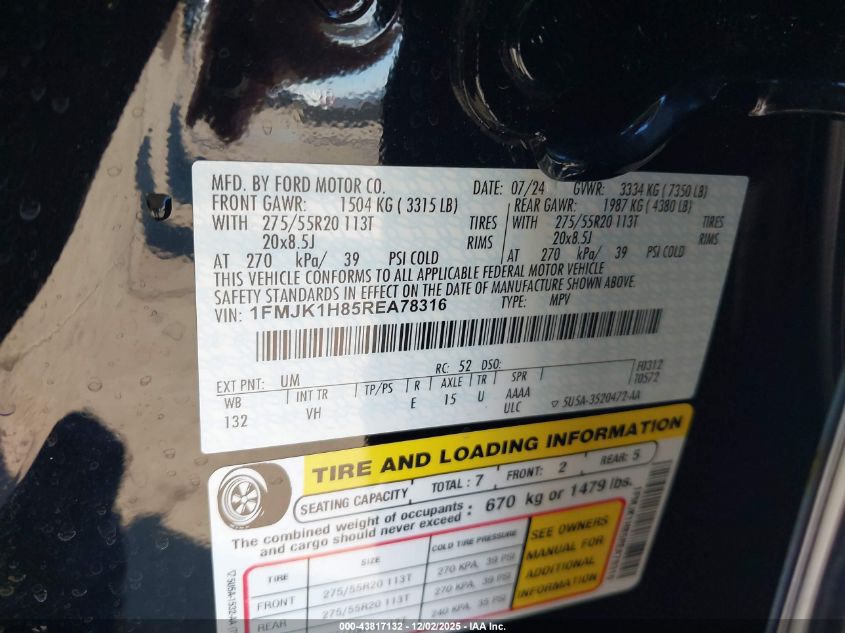 2024 FORD EXPEDITION 2024 року Бензин, 3.5, , vin - 1FMJK1H85REA78316 из США