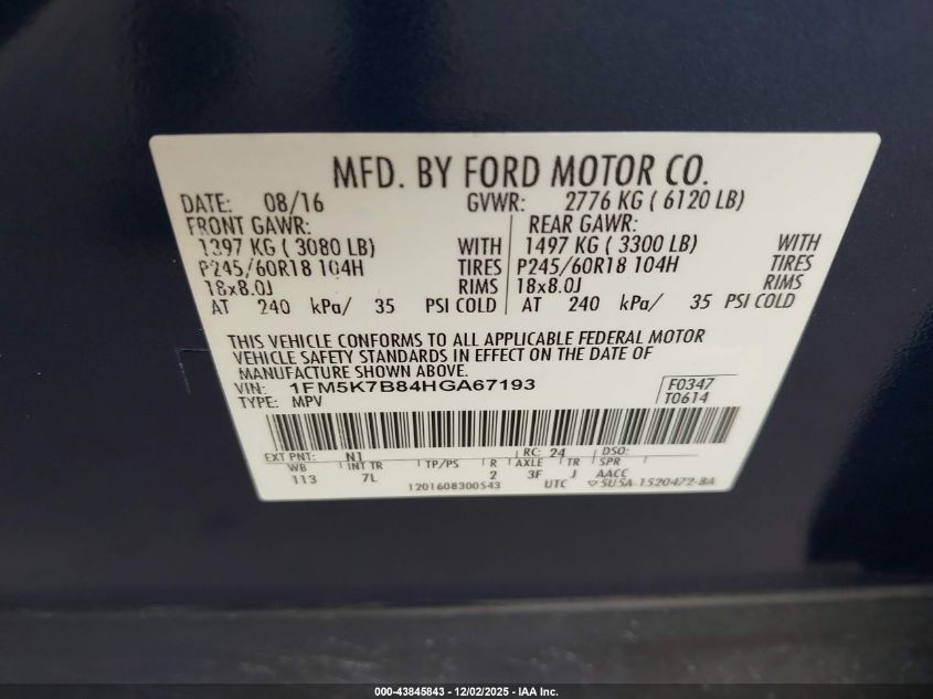 Цвет СинийЦилиндры 6Привод Передний приводVIN 1FM5K7B84HGA67193Состояние СтационарноПовреждения Механические повреждения AutoRIA