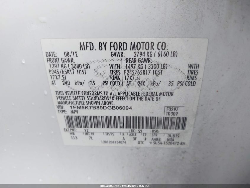 Цвет БелыйЦилиндры 6Привод Передний приводVIN 1FM5K7B89DGB06094Состояние СтационарноПовреждения Правая сторона AutoRIA