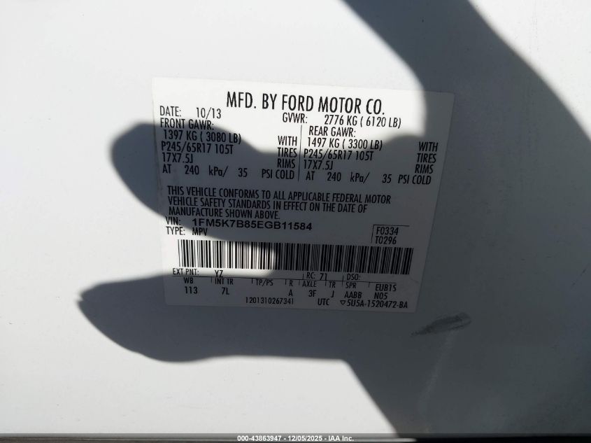 Цвет БелыйЦилиндры 6Привод Передний приводVIN 1FM5K7B85EGB11584Состояние Заводится и едет (проверено)Повреждения Левая сторона AutoRIA