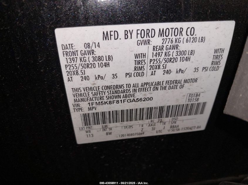 2015 FORD EXPLORER 2015 року Бензин, 3.5, Полный привод, vin - 1FM5K8F81FGA56200 из США