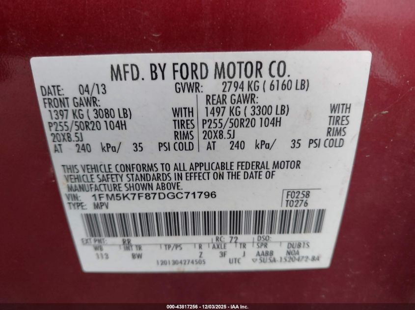 2013 FORD EXPLORER 2013 року Бензин, 3.5, Передний привод, vin - 1FM5K7F87DGC71796 из США