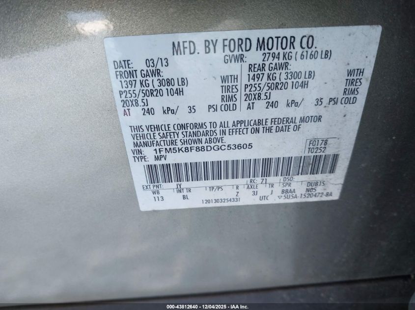 Цвет ЗеленыйЦилиндры 6Привод Полный приводVIN 1FM5K8F88DGC53605Состояние ЗаводитсяПовреждения Правая сторона AutoRIA