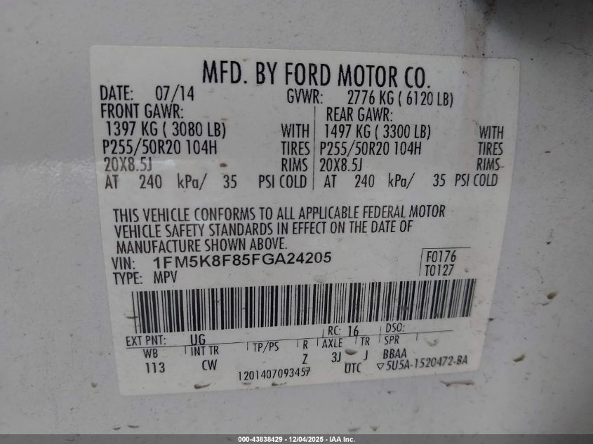 Цвет БелыйЦилиндры 6Привод Полный приводVIN 1FM5K8F85FGA24205Состояние Заводится и едет (проверено)Повреждения Правая сторона AutoRIA