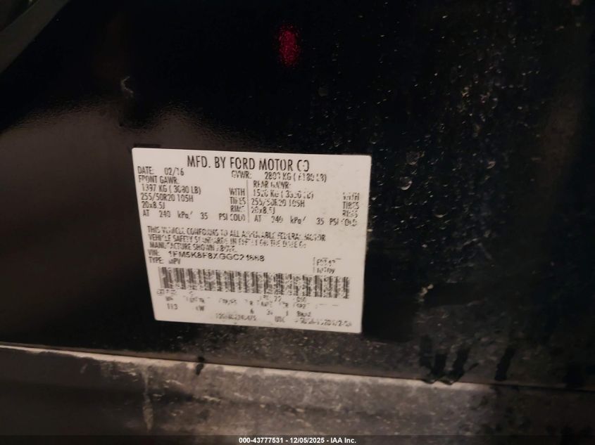 2016 FORD EXPLORER 2016 року Бензин, 3.5, Полный привод, vin - 1FM5K8F8XGGC24868 из США