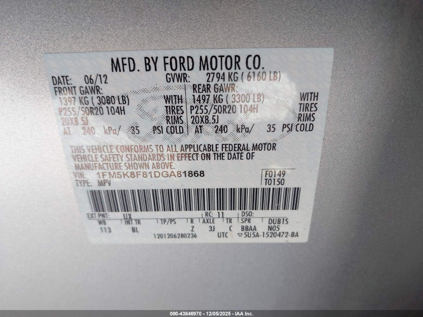 Цвет СеребряныйЦилиндры 6Привод Полный приводVIN 1FM5K8F81DGA81868Состояние Заводится и едет (проверено)Повреждения Передняя или задняя AutoRIA