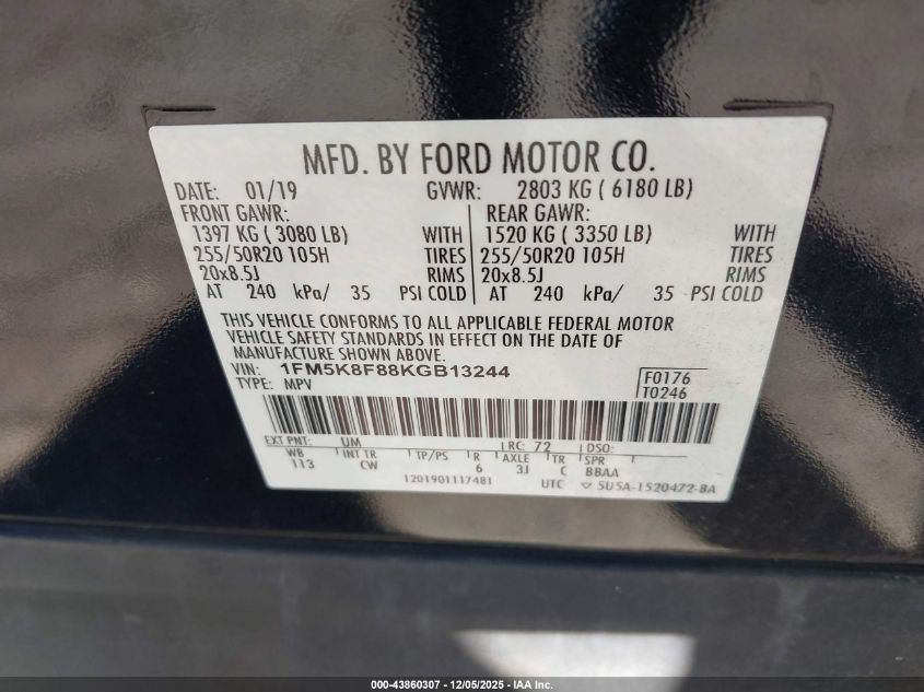 2019 FORD EXPLORER 2019 року Бензин, 3.5, Полный привод, vin - 1FM5K8F88KGB13244 из США