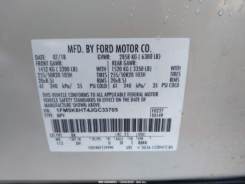 Цвет БелыйЦилиндры 6Привод Полный приводVIN 1FM5K8HT4JGC33705Состояние Заводится и едет (проверено)Повреждения Правая сторона AutoRIA