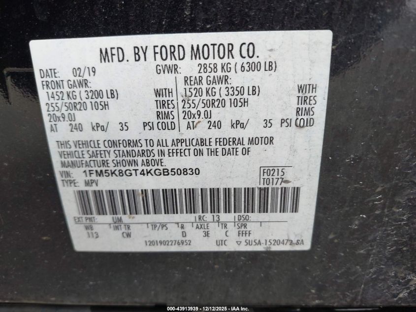 2019 FORD EXPLORER 2019 року Бензин, 3.5, Полный привод, vin - 1FM5K8GT4KGB50830 из США