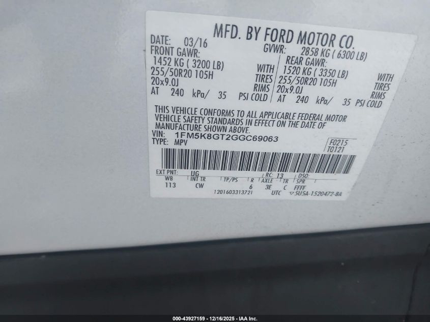 Цвет БелыйЦилиндры 6Привод Полный приводVIN 1FM5K8GT2GGC69063Состояние Заводится и едет (проверено)Повреждения Мотор AutoRIA