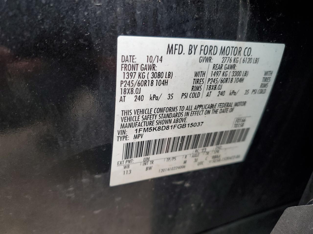 Цвет ЧерныйЦилиндры 6Привод 4x4 с передним приводомVIN 1FM5K8D81FGB15037Состояние Заводится и едет (проверено)Повреждения НезначительныеДата аукциона 2025-12-10 AutoRIA