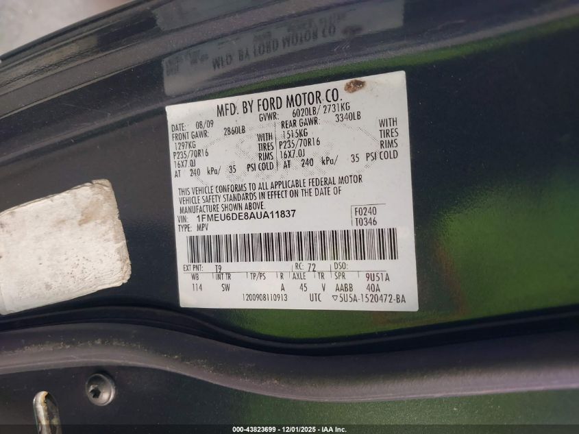 Цвет СерыйЦилиндры 6VIN 1FMEU6DE8AUA11837Состояние СтационарноПовреждения Передняя или задняя AutoRIA