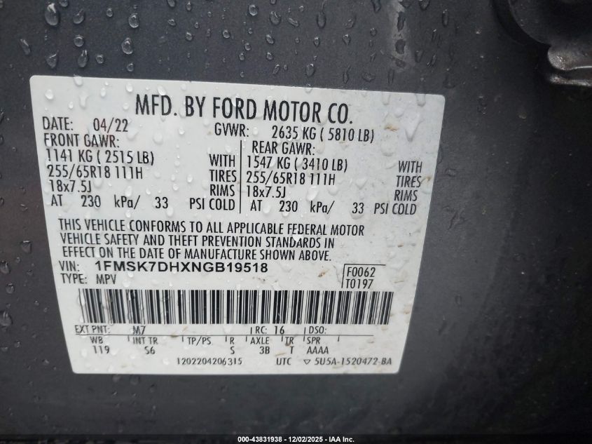 Цвет СерыйЦилиндры 4VIN 1FMSK7DHXNGB19518Состояние Заводится и едет (проверено)Повреждения Передняя и задняя AutoRIA